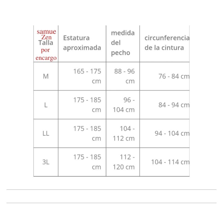 otras tallas y/o colores por encargo