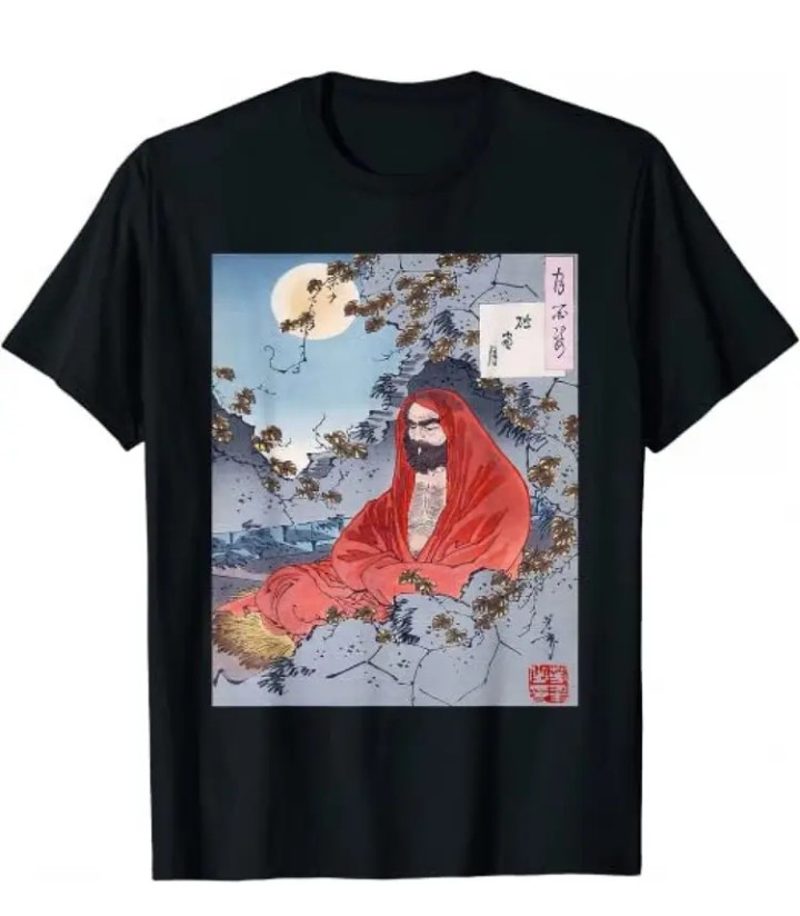 Camiseta Zen 16€ Bodhidharma en meditación bajo la luna